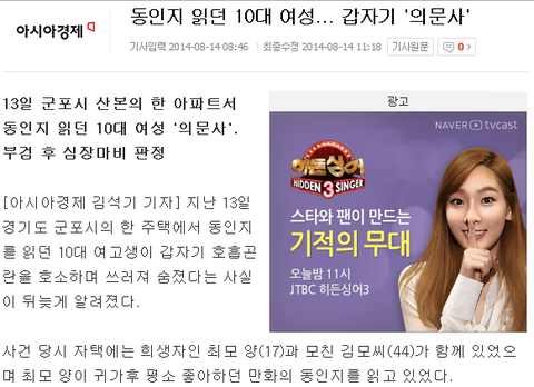 동인지 읽던 여고생 의문사..