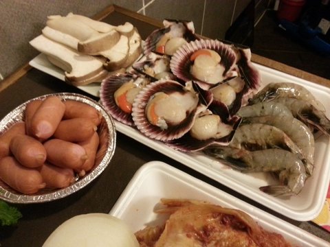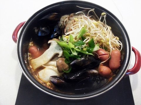 홍합+새우+새송이버섯+콩나물+비엔나소세지+대파+마늘