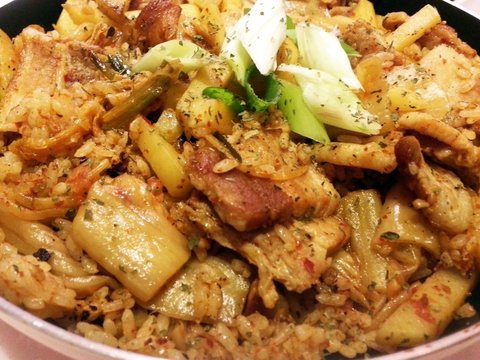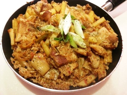 소세지+신김치+삼겹살+감자+대파를 넣고 볶음밥을 했지요.