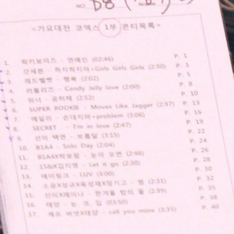 가요대전 큐시트떴다