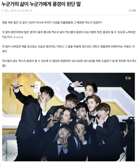 내가 몇달전에 새벽에 감성에 젖어ㅋㅋㅋㅋ 쓴 글이거든ㅋㅋㅋ 근데 오늘 종인이 수상소감을 보면서 종인이한테 편지 써놓았던게 생각 나더라