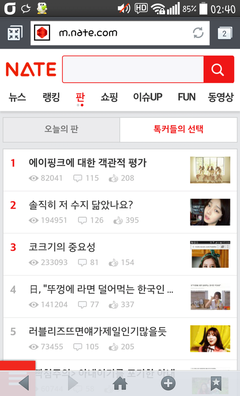 새벽에 올리는 필자의 특성상 에이핑크 글은 새벽에 1위도 찍음.