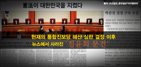헌재의 통합진보당 해산 심판이 선고된 이후, 갑자기 뉴스에서 ‘정윤회 문건’ 보도가 사라졌습니다. 그저 박관천 경정이 모든 주범이었다는 단신이 구석에 보도된 것 이외에는 그 많던 정윤회 문건 보도는 순식간에 자취를 감췄습니다.