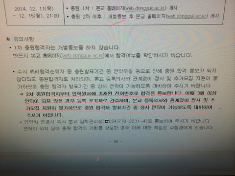 처음엔 수시합격이란소식에 너무좋아했는데 동국대입학처가 연결이 너무안되는겁니다 연결된후에 하는말이 이미등록기간도 끝나고 불합격으로 처리되어있고 수시합격자라 정시도 지원이안된다는 청천벽력같은 소리를 들었습니다