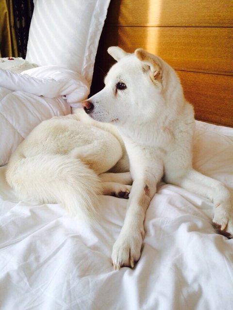 그동안 관리가 잘 돼었던 아이 이기에, 그 촘촘한 흰털에 때 하나 묻어 있지 않습니다.
