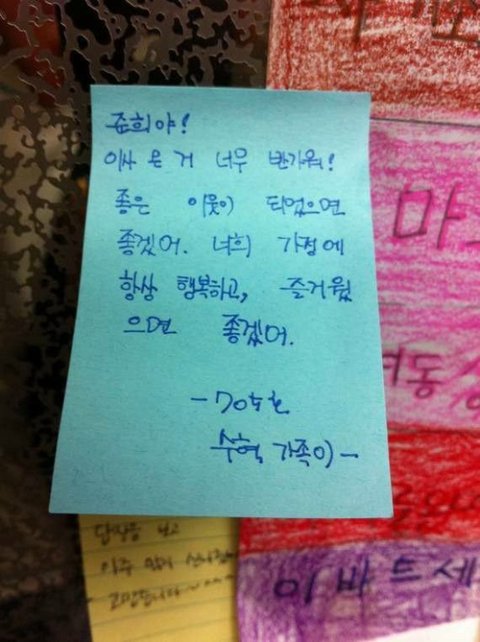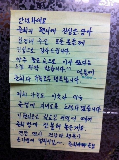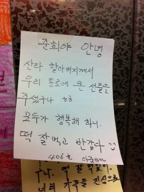 같은 동에 사는 주민들이 하나 둘 환영 인사를 붙여주기 시작했습니다