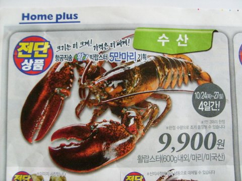당시 이마트(500g)나 롯데마트(450g)는 10000원에 랍스터를 판매 했습니다.