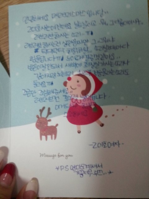 크리스마스에 훈훈한 편지와 초콜릿두개가 집앞에 놓여져 잇더군요 ㅎㅎ 출처는 아랫집에서 온편지엿어요