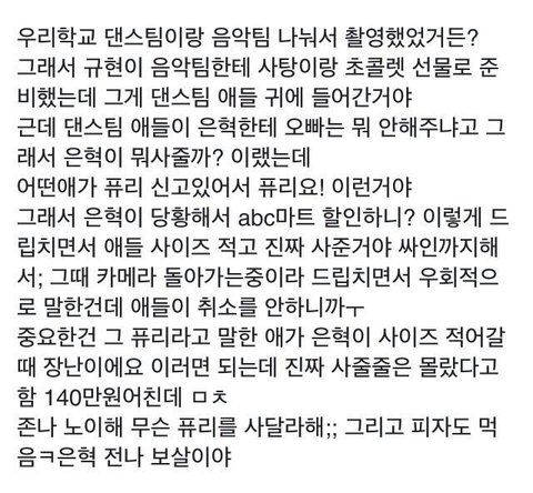 자기네학교촬영온것도감사해야할판에 아이돌한테 140만원을뜯냐?진짜 거지근성대단하다 은혁이보살이다보살부개여고 댄스팀 대단하십니다