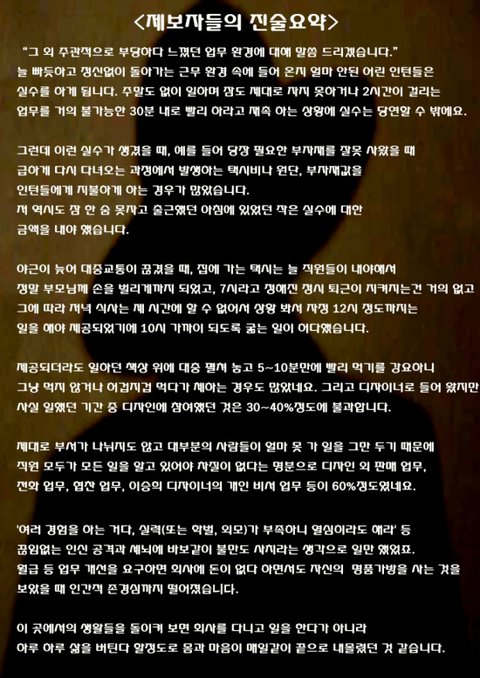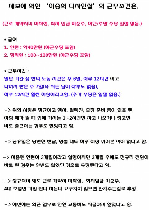 그렇게 부려먹고 40만원 주면서 당신들 마음이 편합니까? 아무리 자기들이 지원해서 하는 일이라도 그렇지 저따구로 대우해놓고 사람들한테 멋진옷이라고 칭찬들어먹으면 두 발 뻗고 잠이 오시나요?