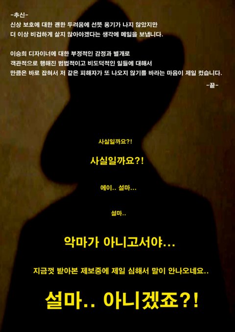 예전에 무한도전에 이상봉씨 나왔을때 한국을 알리려고 옷에 한글 쓴다고 하셔서 엄청 감동하고 존경스럽게 봤었는데, 올해 이상봉씨가 교양시간에 강연하는거 듣고 개실망 진짜. 자기는 원래 한글을 옷에 넣을 생각이 없었는데 뭐 어디서 한글 넣은 디자인으로 한번 컬렉션해달라고 해서 한번 한글 옷 만들어쓴데 반응이 너무 좋아서 지금까지 한글 넣은 옷을 하고있다고 함. 자기는 한글 넣는거 그만하고 싶은데 주위사람들이 한글 넣은 옷만 바란다면서 불평하고, 중간에 한글 넣은거 아닌 옷 디자인한적 있었는데 잘 안됐다고 말함. 한글을 알리겠다는 마음보다는 한글 넣은 옷이 돈이 되니까 계속 그것만 한다는 느낌이 많이 들었음