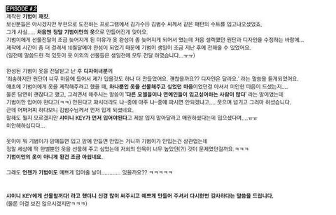분명 자켓을 만들때 디자이너가 디자인이이뻐서 자기가입을옷 ㅎㅏ나더 만든다고했고(디자인은다르다고) 키 홈마는 기범이가 제일먼저입었으면 좋겠다고하고 키만 입으면 좋겠지만 팔게되더라도 꼭 나중에 팔아달라고 부탁함