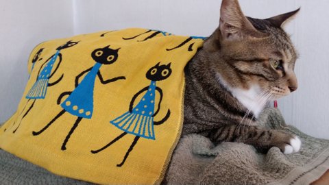 담요가 자기껀줄 아는지... 담요위에 잘 있어요