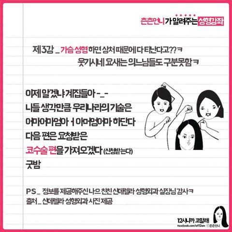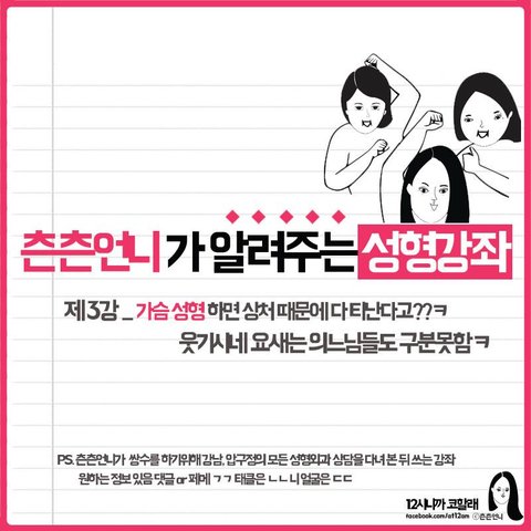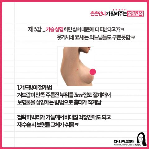 제 주변에 가슴성형하고싶은 사람이 있어서 정보찾아보다가 페북에서 발견.(12시니까 코할게 페이지)