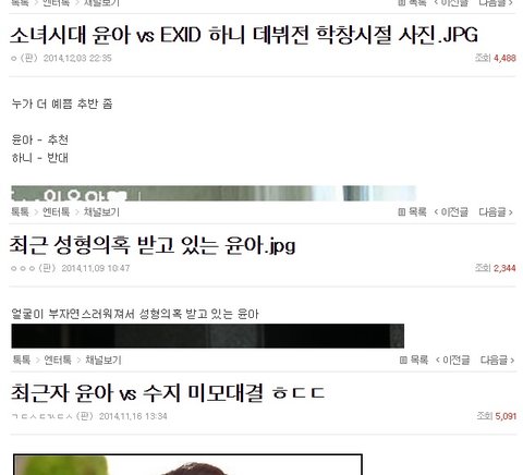 저거 윤아 칭찬하는듯한 제목 들어가보면 윤아 못나온사진 빼빼마른사진으로 가득함