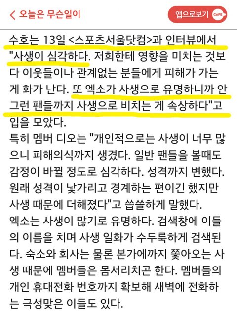 역시 수호는 주변이웃들께 민폐끼칠까 걱정하고 일반팬들 이미지 걱정해주는데