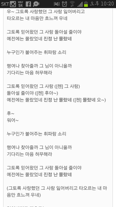 아니 그냥잘라고 딱 누워가꼬 이어폰껴가꼬 노래를 틀었는데 옜날에 백현이하고 첸이 불렀던 진정난 몰랐네를 듣다가 잘불러서 가사봤는데 그냥 신기해서 올려요