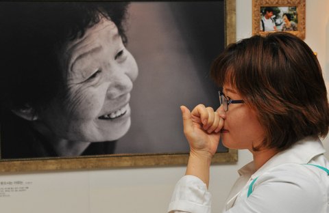 하나님의교회 세계복음선교협회는 11일부터 내년 2월 1일까지 ‘우리 어머니 글과 사진전’을 연다. 부산지역에서 열린 전시회를 찾은 한 관람객이 어머니 생각에 눈물을 훔치고 있다.