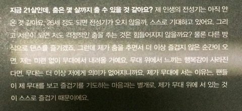 특히 나는 팬을 위해서도 있지만 자신을 위해서 더 춤춘다는 말이 왜이렇게 멋있을까