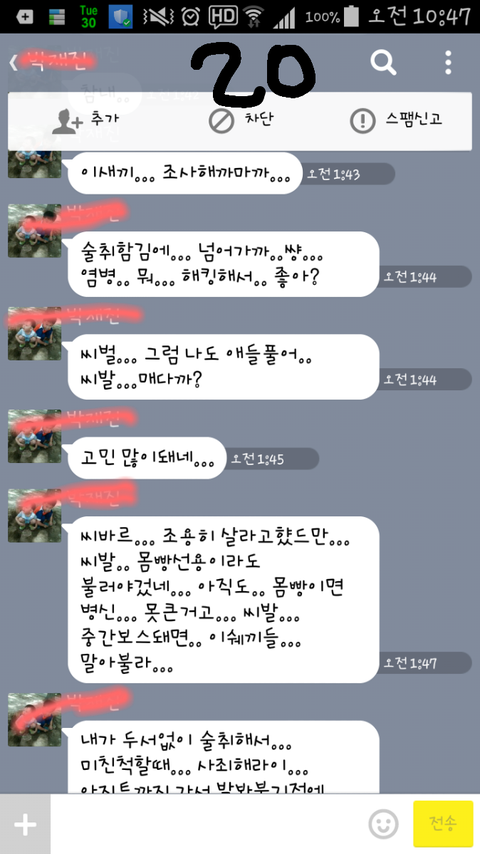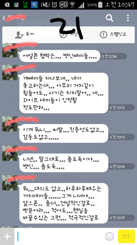 내용이 지금 집이냐는둥 당장 달려가서 선을넘고싶다는둥 너를 만지고 싶다는둥 자기는 짐승이고 변태라는둥 별 개소리를 짓걸이더라구요