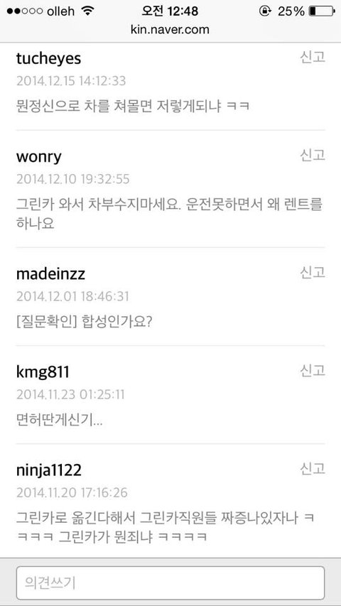 그린카 : 거절한다 오지마라 쏘카 차 멸종할때까지 오지마라