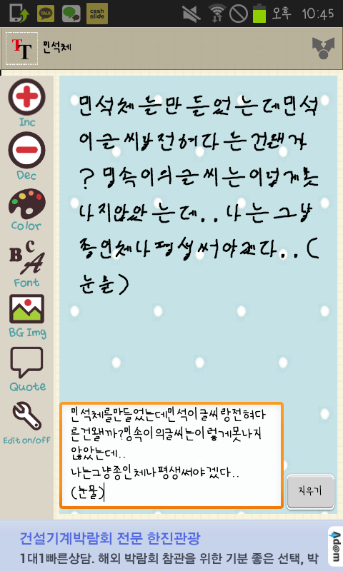 민석체를만들었는데