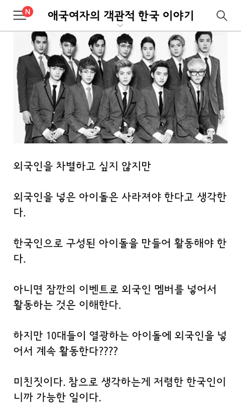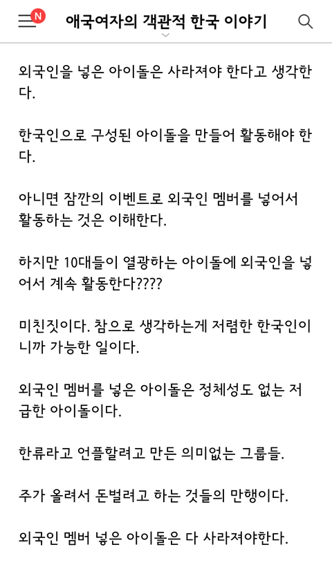 그 애국자년 외국인 아이돌 없어져야 된대ㅋㅋㅋ