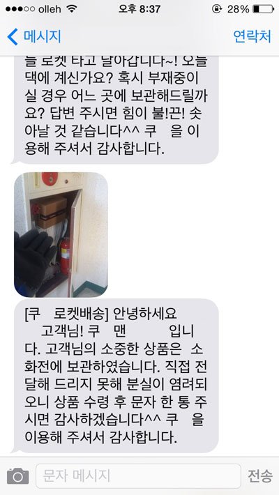 이렇게 직접 친절하게 문자도 해주시고, 어디에 두었다고 사진도 찍어 보내주시는 모습에