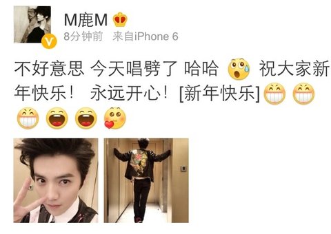 방금 루한이 올린 웨이보