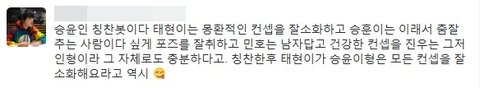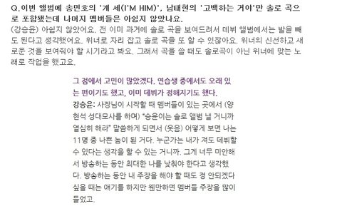 불만갖지 않았냐고 강승윤에게 물어보니까 강승윤이 대답한 내용임.