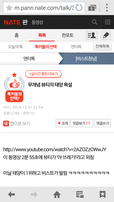 이젠 이도저도안되니깐 어떻게든 비스트 깍아내려고 별거다함 톡채널이름도 비스트창남ㅋㅋㅋㅋ;;