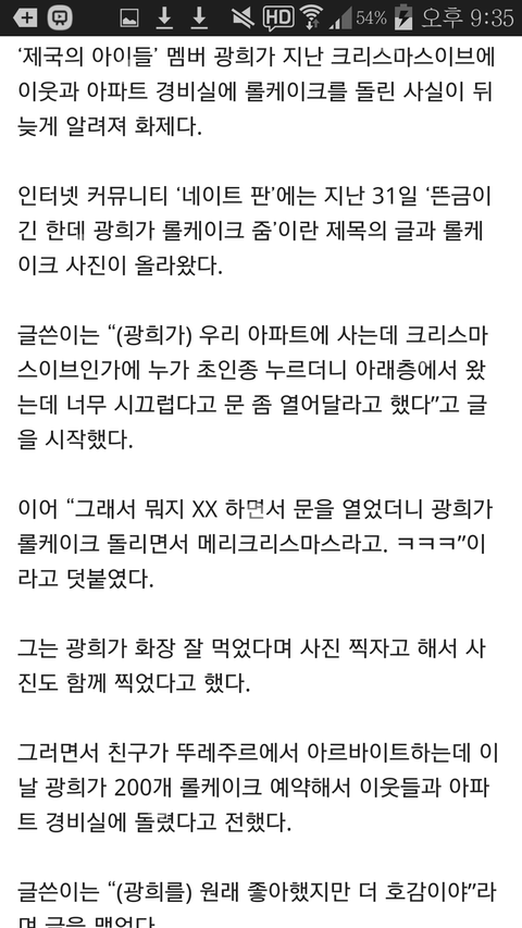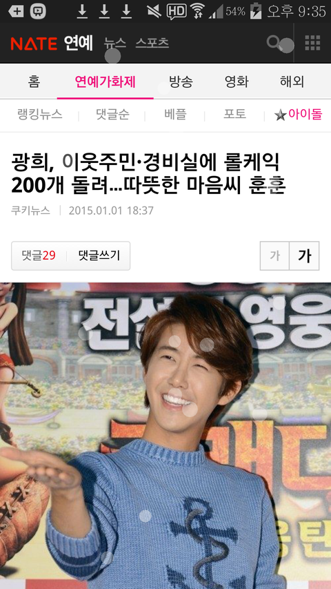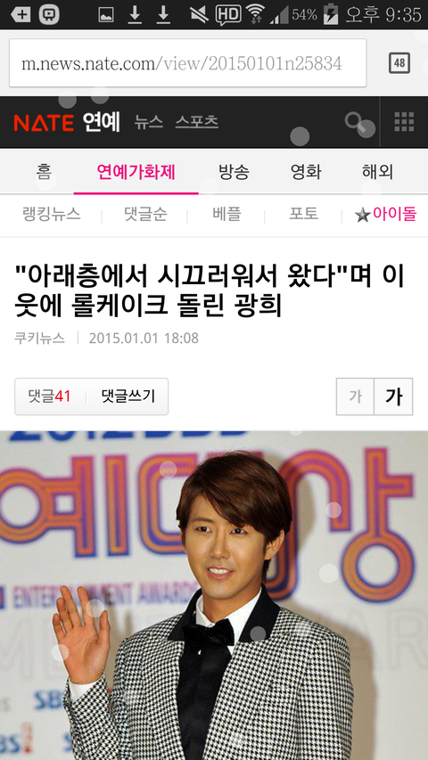 기사났어 광희이미지좋아졋다 너가쓴글로