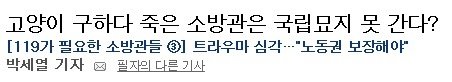 고양이를 구하다 사망한 소방관이 순직으로 인정받지 못 하다가 3년이 지난 최근 인정받는 일도 있었음