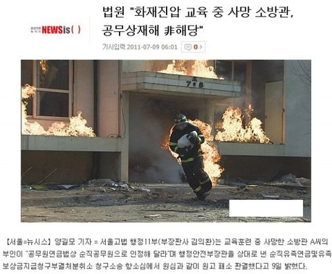 소방 훈련을 받다가 사망했지만 역시 순직 인정을 받지 못 함
