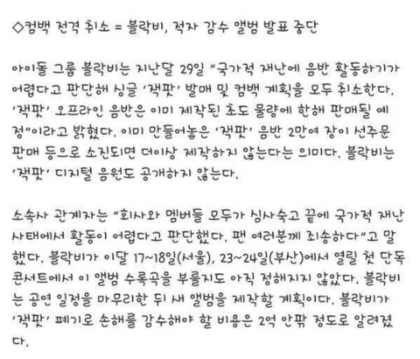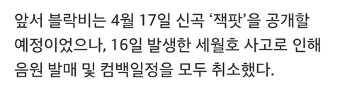 세월호 사건이 터졌던 당시 이미 뮤비랑 앨범까지 나오고 컴백날짜도 나온 잭팟을 활동을 미룬것도 아니고 아예 취소