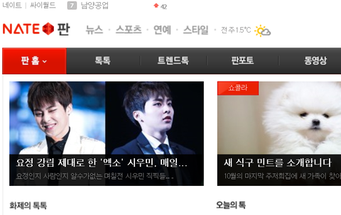 웅녀들 2015년 새해가 밝았어. 웅녀들 모두 항상 건강하고 행복한 일만 많이 생기길 바랄께~ ㅋ 내가 전에 민석이 초록창 메인 캡쳐모음 글을 올린 적이 있어. 근데 그 글이 시우민톡 시간여행 글에도 올라갔더라구. 완전 감격! ㅋㅋㅋ 그게 7월 말에 올린 거라서 그 이후 캡쳐본을 모아봤어. 그리고 민석이가 네이트의 엔터톡 메인으로도 많이 올라갔잖아? 그 자료도 모았거든? 근데 내가 11월부터 모으기 시작해서 그 전 자료는 없네. 혹시 내가 빠트린 자료 가진 웅녀 있으면 댓글로 올려주면 고맙겠어. 자료들은 내가 캡쳐한 것도 있고 웅녀들이 올려준 것도 있거든? 민석이 관련 자료 있으면 모두 열심히 캡쳐해서 올려주는 웅녀들 모두 수고 많았어. 고마워요~~~ 올 한해도 모두 힘 합쳐서 민석이 열심히 응원하자!!! >.<
