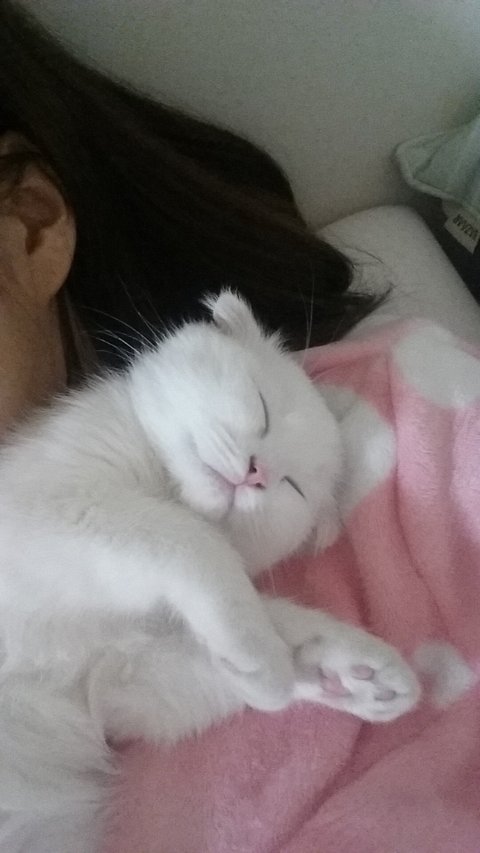 첨에 데려왔을땐 가슴위로 올라와 자곤 했어요!