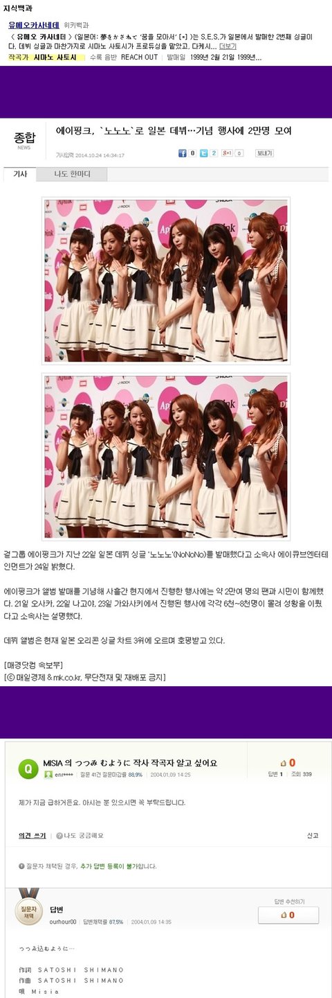 S.E.S. 꿈을모아서 일본 오리지널 작곡가가 일본인인데