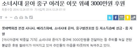 2일 서울 사회복지공동모금회는 "그룹 소녀시대 멤버 윤아 씨가 새해 첫 아너 소사이어티(Honor Society) 주인공이 됐다"고 밝혔다. 윤아는 지난 2010년부터 매년 연말 나눔을 통해 저소득층을 도와 온 것으로 전해졌다.