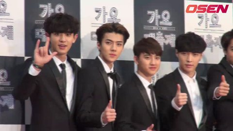 가요대축제 포토월 엑소 차례가 됐음ㅋㅋ타오 뒤도 안돌아 보고 파워당당 입장