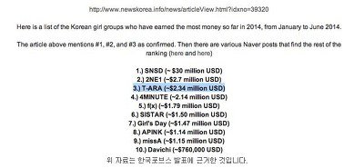2014 걸그룹 해외국내 총 매출순위