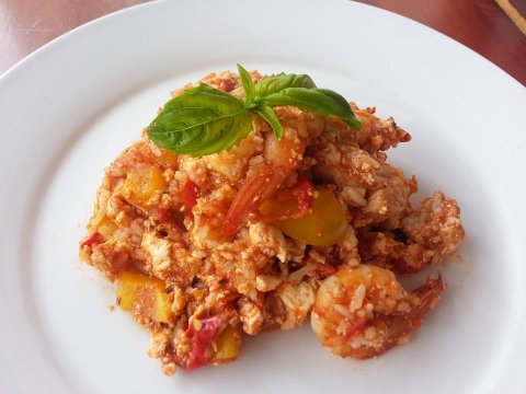 <두부를 넣은 토마토 리조또> 거의 쌀도 안먹게 되었어요. 밥통이 있기는 한데 그냥 밥을 가끔 사서 두부나 렌팅 콩에 섞어서 요리 해요. 김치 볶음밥 먹고 싶다아~