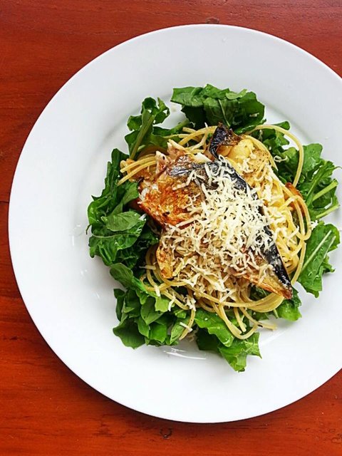 <고등어 파스타> 알리올리오에 고등어를 얹은 건데 올리브유에 마늘 구울때 같이 옆에서 바삭하게 구워서 올린건데 짭조름하게 간해야 더 맛있어요. 이건 논현동에 시크릿 가든에 있는 메뉴인데 일본마트에서 고등어를 발견하고 엎어 와서 흡입. 뭐 여긴 생선도 먹는게 달라서.