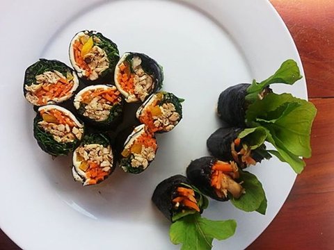 <치즈 닭고기 김밥> 사실 불고기 양념 한 소고기 넣은게 더 맛있어요. 불고기 양념 살짝 한 달가슴살이랑 야채 루꼴라랑 치즈를 김밥처럼 말았어요. 불고기 양념에 마늘 안넣었는데 루꼴라 덕분에 쌉싸름해서 외국 친구들이 잘 먹었던 김밥이에요. 사실 밥을 넣으려고 했는데 여기 쌀이 날리는 쌀이라 김밥 쌓니까 뻑뻑해서 실패.