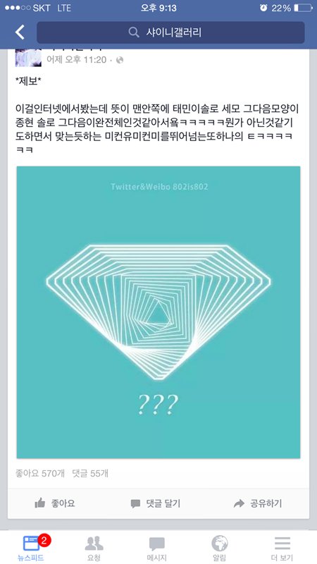삼각형 태민→사각형 종현→오각형(다이아몬드) 샤이니