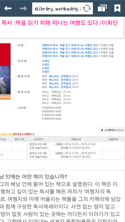 여행자의독서 학교도서관에서빌리려고했는데