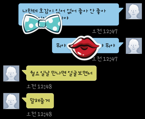 지난 3~4개월간 숱한 우여곡절이 있었는데(적어도 나한텐) 이젠 끝이다!!! 서로서로 맘도 확실해졌고 나때문에 얘가 변하는 것도 보이고 서로 오글거리는 말도 막 하고! (사실 이건 지금 잠들었다 아침 됏을 때 확인해도 이불킥 예약이겟지만...)하 진짜 힘들엇다 내가 막 대쉬하고.. 결국 데이트도 해보고!!! 하 너무 좋아 무튼무튼 이젠 다 끝났다 얘가 고백만 하면 사귀게 된다!!! 야ㅑ아호오오오♡♡♡♡♡!!