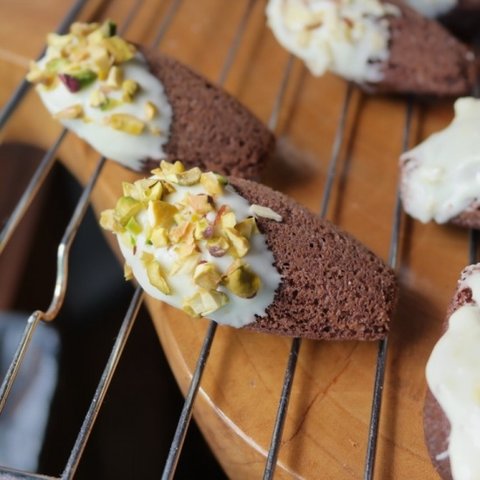 화이트초콜릿을 발라 피스타치오를 올렸어요!