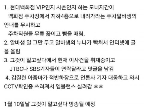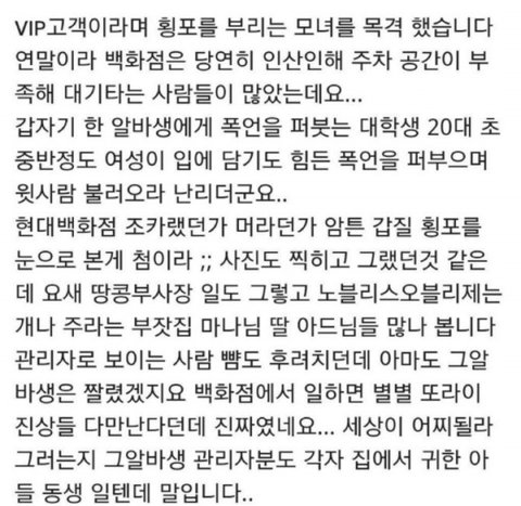 천민들이 갑자기 돈좀 생기니까 어딜가나 대접쳐받을라하는 못배운티를 내는것임..진짜 갑이라면 알바말듣고 없는주차공간 찾지말고 가라는데가서 주차하는게 갑중의갑 다운 행동인데..