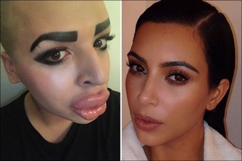 그는 킴의 매력포인트인 섹시한 입술과 까만 눈썹을 갖기위해